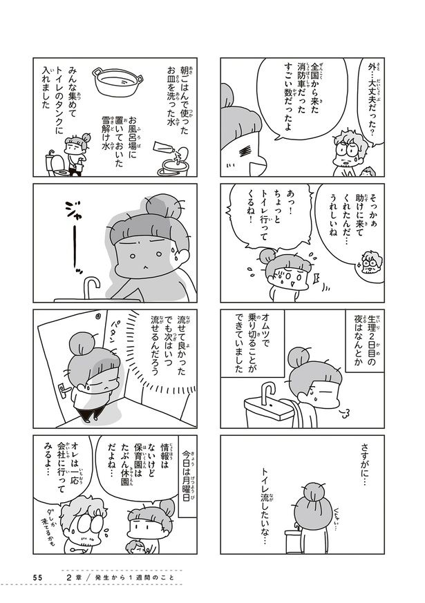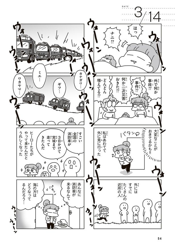 本書は、現在は防災士としても活動する漫画家&イラストレーターである著者が、東日本大震災を経験した当時(2011年3月11日〜4月)の詳細なメモを元にまとめています。