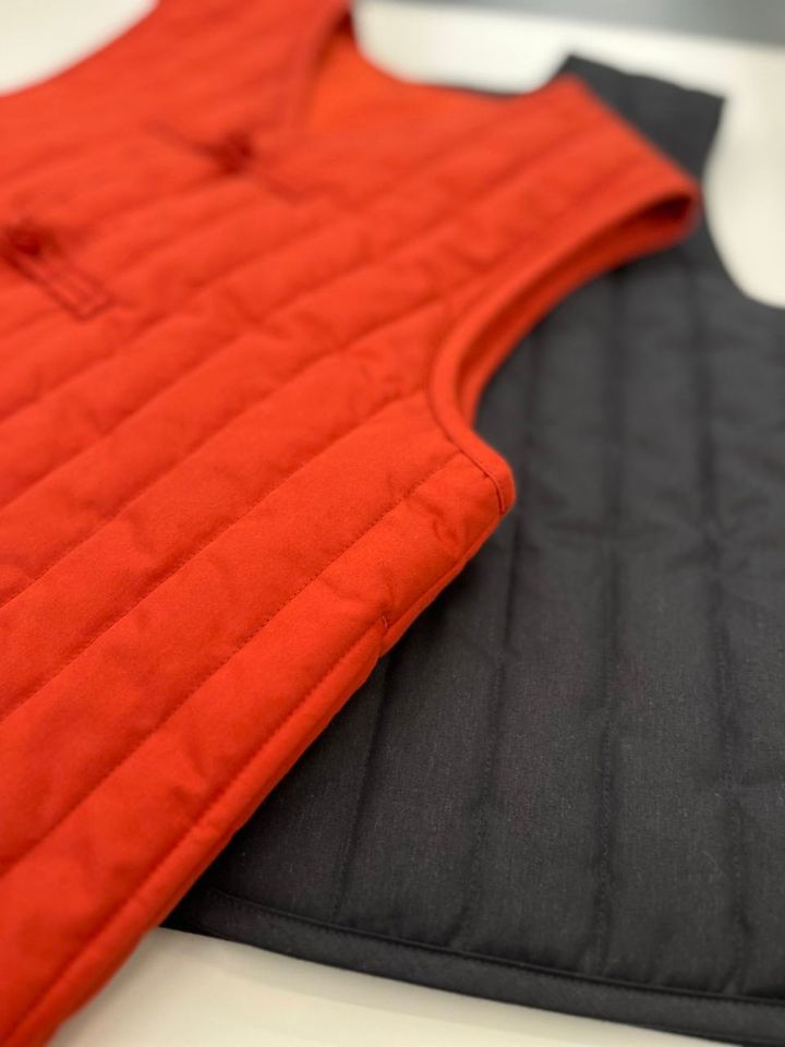 「このベストは目がつまっている平織りで、ほんのり光沢もあるのでいろいろな素材に合わせられるんですよね。キルティングのステッチもタテのみなので、カジュアルすぎずに使いやすいところも気に入りました! 」
