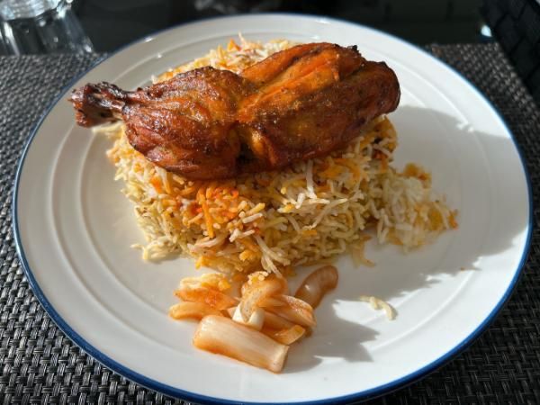 ハーフのビリヤニを頼むという手もありますが、ここは普通サイズでタンドリービリヤニをオーダー。
