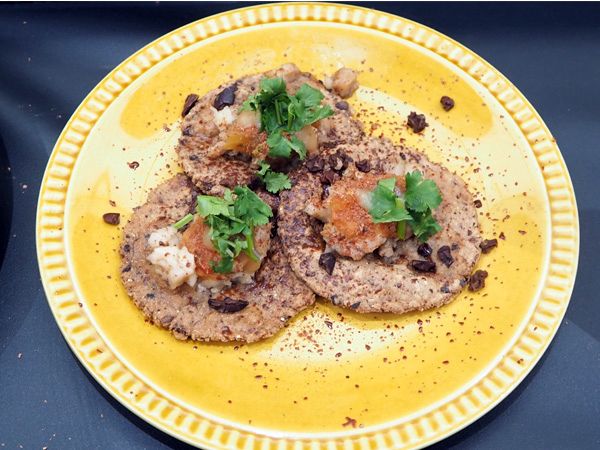 「メメントモリ」で食べられるのは自家製のカカオハスクを練りこんだ香ばしいトルティーヤに、じっくり煮込んだ豚肉のカルニタス(スペイン語で“小さな肉”の意味)が乗ったタコス。仕上げにカカオを削りかけています。豚肉とチョコ!?と思いつつ試食してみると、これが意外に合う! 肉のコクとスパイスの香りに奥行きがうまれた、カカオの新しい可能性を感じられるひと皿です。