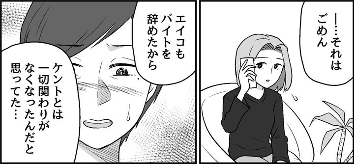 エイコは二股を否定しますが、私がケントと別れてからエイコがケントと初デートしたお正月まではわずか2週間ほどしかありません。そんなにすぐ付き合いはじめていたなんて、聞かされてもいい気はしません。私はエイコを問い詰めます。