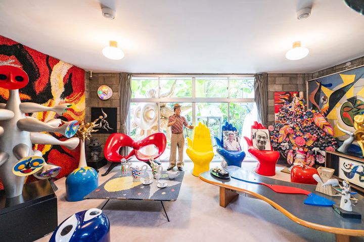 応接や打ち合わせに使われていたサロンでは、大きな掃き出し窓が庭との一体感・連続感を演出。アトリエは岡本の「創造のゆりかご」となり、この建築に触発されるように、それまでの絵画だけではなく、壁画や彫刻、陶芸、写真など、新しい表現ジャンルを次々と開拓していった。