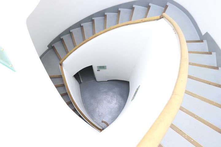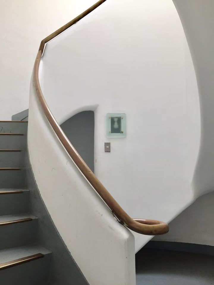 坂倉は、ここ以外ではフランスのシャンポール城しか見られないという珍しい二層式の螺旋階段を、美しい曲線でモダンに仕上げた。