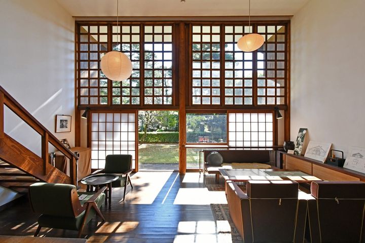 この居間は、戦後しばらくの間、事務所の製図室として使われた。銀座にあった前川事務所が空襲の被害にあったためだ。ここに置かれたダイニングテーブルは、当時の図面から復元したものなので、訪れた際は、ぜひチェックしてみてほしい。
