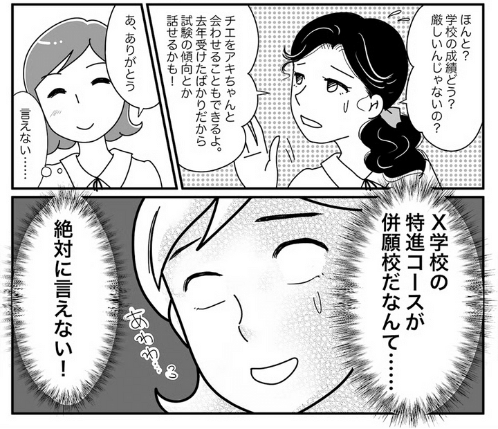 「情報を与えたくない相手なのでは?」という推測もありました。例えばそれぞれの子が同じくらいの偏差値で片方は第一志望に合格したけれど、片方は滑り止め校のケース。知り合い全員に触れ回りそうな”スピーカー”ママというケース。普段はさほど親しくもないのに、プライベートを探るときだけ近づいてくる相手にも教えたくはないでしょう。
