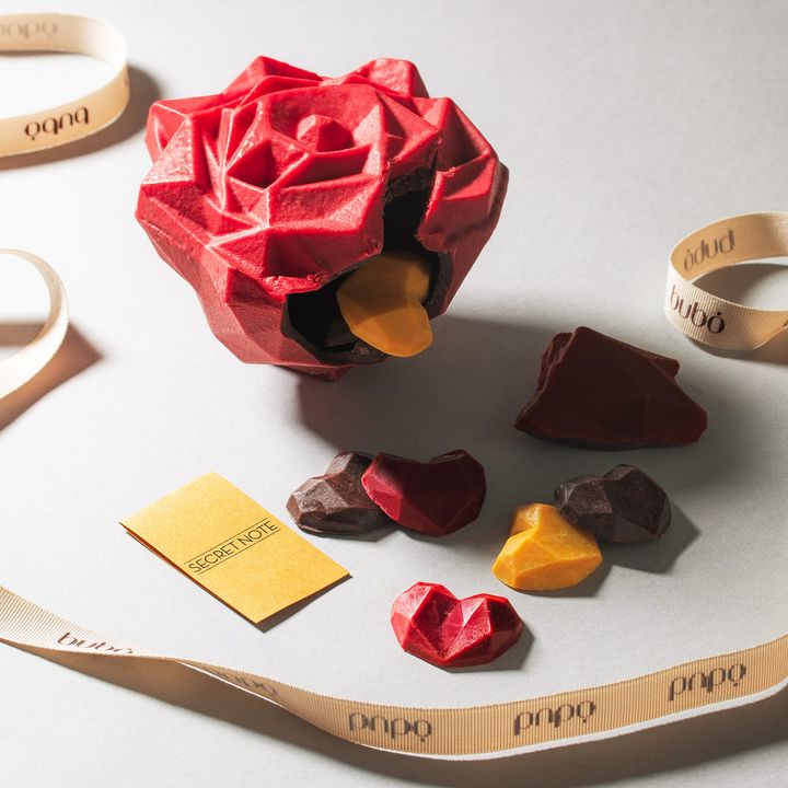 ブボ・バルセロナの象徴的な「チョコスカルプチャー」シリーズが、この度「チョコスカルプチャー ジュエル」シリーズとしてリニューアル。その精巧さゆえに、これまで一部店舗限定だった商品が、配送可能となった。箱を開けた瞬間の感動を、遠く離れた大切な人へも贈ることができる。