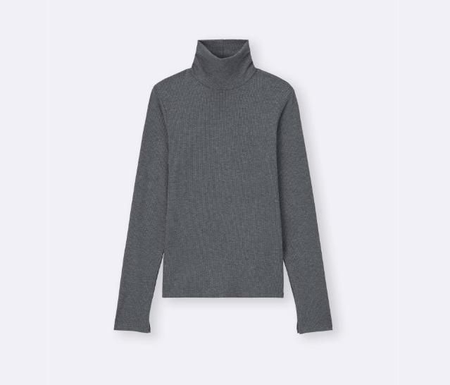 リブ素材で、すっきりとしたシルエットが特徴のタートルネックTです。
