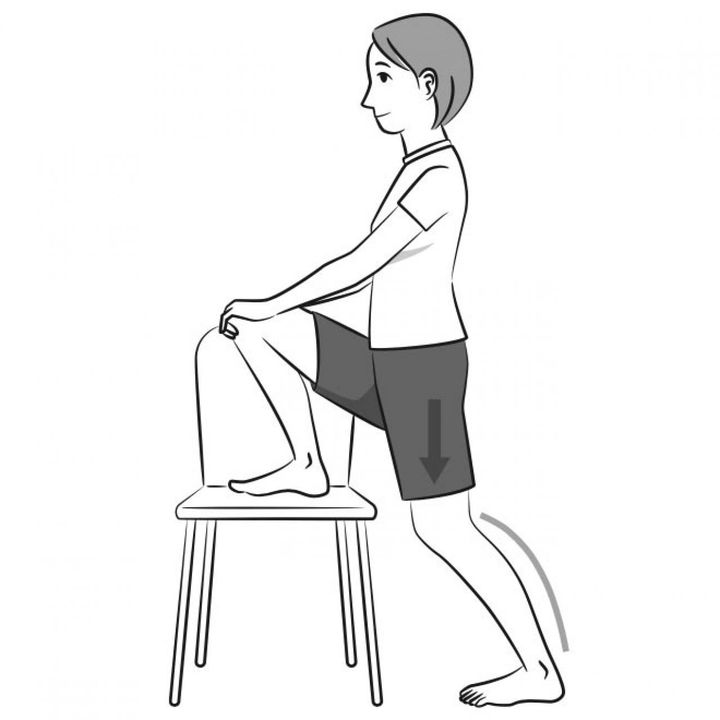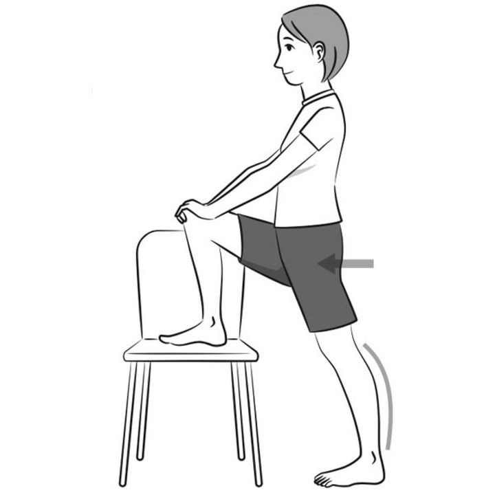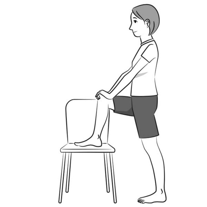 【1】しっかりしたいすか階段などに片足を乗せて、両手を太ももの上に置く