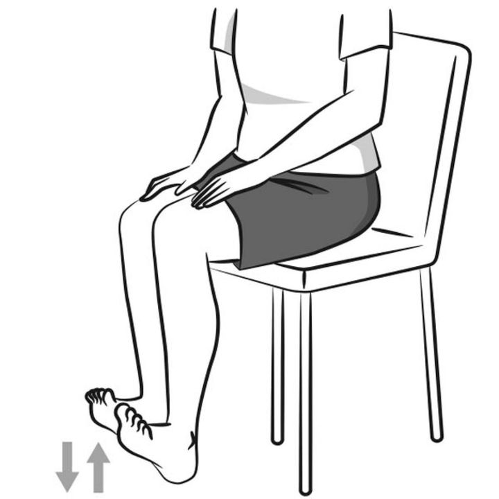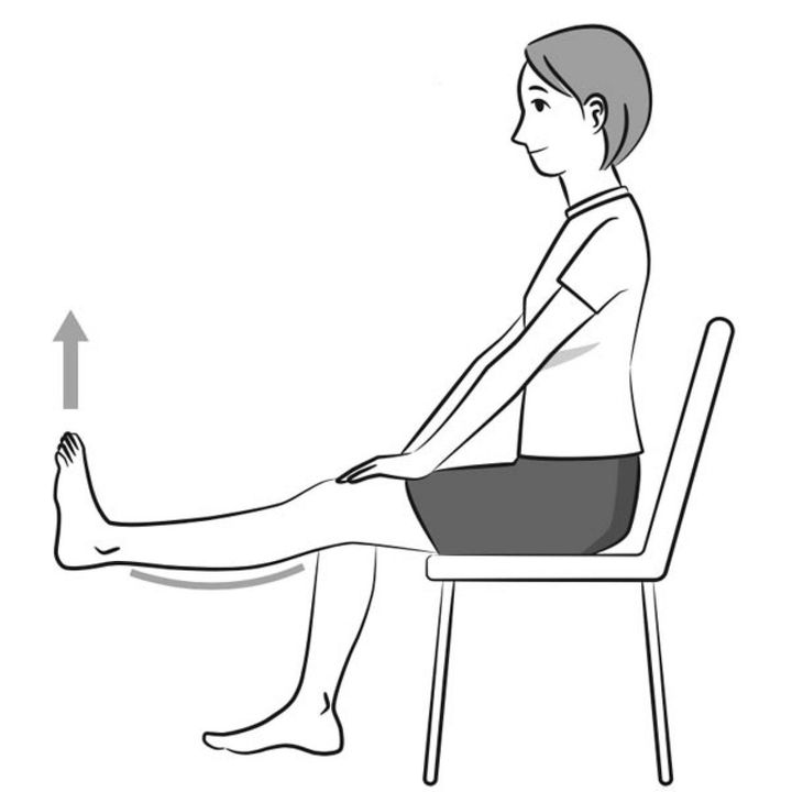 いすなどに腰かけて、かかとを床につけて、つま先を30回上げ下げする