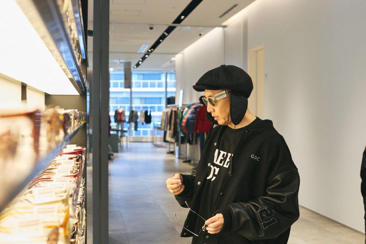 すでに廃盤になっているモデルのため、代わりになる一本を探している最中だが、「自分とのつながり」を大事にもの選びをするPESさんの心を射止める眼鏡と出会うべく、SELECT by BAYCREW’S内のEYETHINKも探索した。