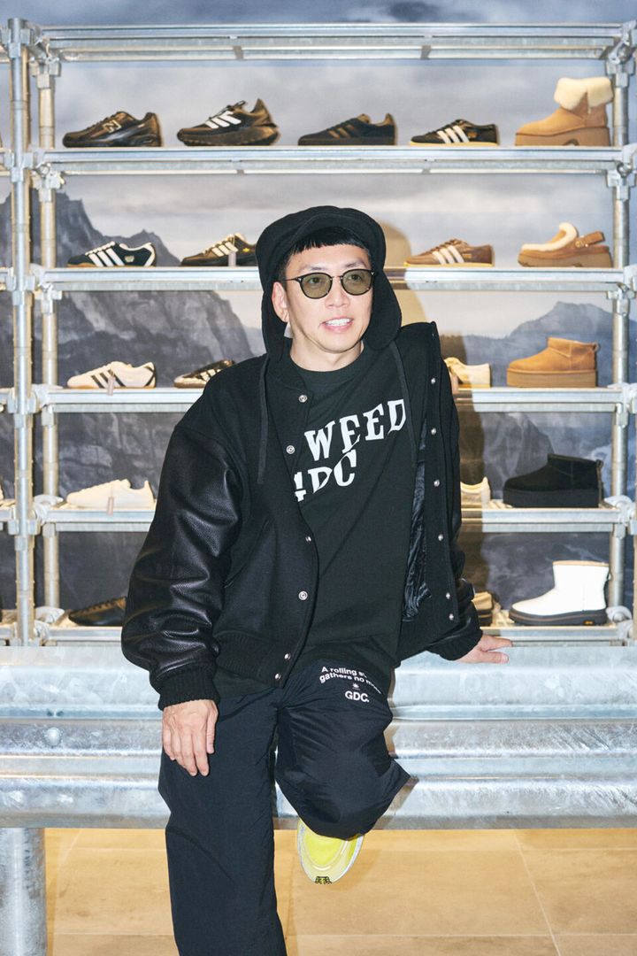 今は、クローゼットの中は黒い服だらけ。今日着用した〈GDC〉のウェアも真っ黒で、そこにスニーカーで色を差すのが、ここ最近の定番になっているという。