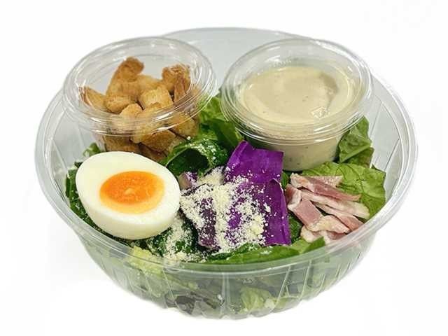 パルメザンチーズやブイヨンでコクと旨みを出したシーザードレッシングをかけて召し上がっていただくサラダです。大き目にカットしたサクサクのクルトンを盛りつけました。 カロリー:378kcal 【販売地域】茨城県、栃木県、群馬県、埼玉県