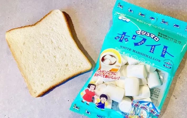 まずは食パンにマシュマロを並べます。