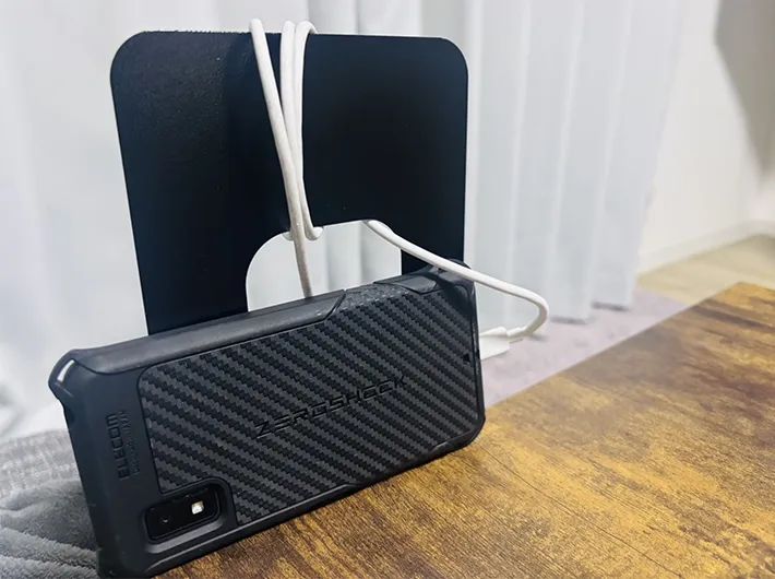 中心に穴が空いているタイプのブックエンドなら、スマホの充電ケーブルを通したり、巻きつけて長さ調節をしたりするのにも役立ちます。