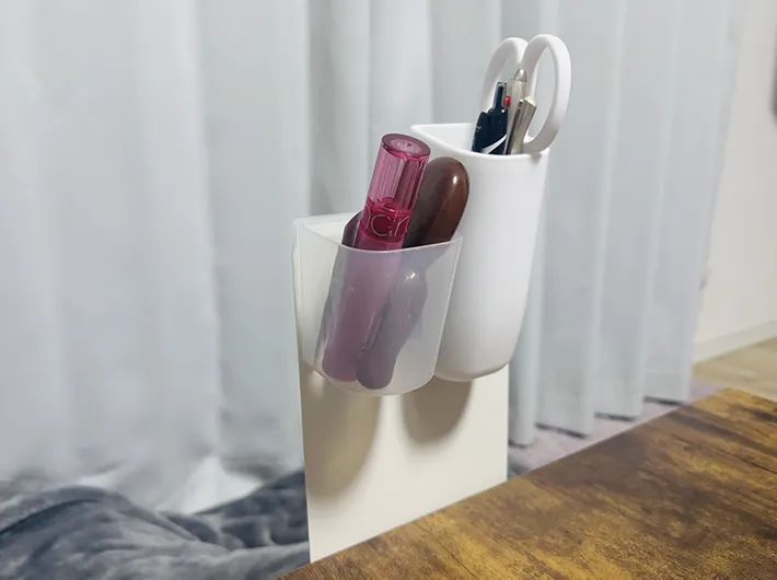 100円ショップなどで売っているマグネットつきのケースを貼りつければ、ペンや印鑑、リップクリームなどの小物入れに早変わりです。