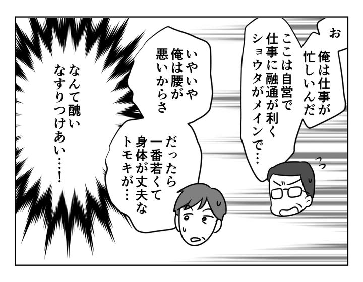 いざ自分にその役割が回ってくると、あれこれ理由をつけて逃げようとするタダノリさん。遺産は平等だと主張するのに、介護問題はのらりくらりと逃げようとするショウタさん。ふたりとも、潔くない! 格好悪いですよ! そもそも義両親のモットーは、「三人平等」。トモキさんの言う通り、三人で介護負担を分け合うのが一番いいと思いますよ。