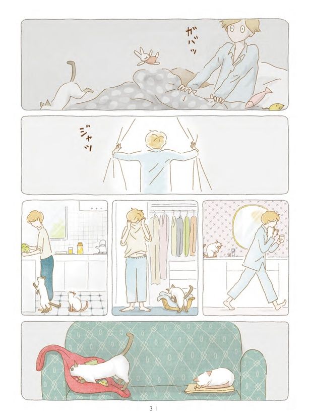 お花見、梅仕事、お盆、花火、紅葉、冬支度のお裁縫… さくらんぼ、お祭りの綿あめ、焼き芋、エッグノック、手作りパン… 季節の移り変わりを楽しみ、おいしいものに囲まれながら、愛あふれるしあわせな日々。 絵本のような癒やしのコミック『夜が明けるとき猫がそばにいれば』をお届けします。