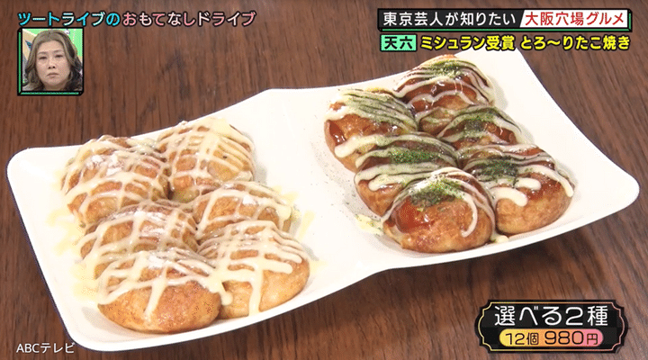 1月15日放送回では、関西を離れて20年以上が経つCOWCOWのために、ツートライブが現在の大阪の穴場名店を案内! 4人は「天ぷらとお出汁 渉」のほか、ミシュランのビブグルマンを3年連続で獲得した「たこ焼き玉屋本店」(天神橋筋六丁目)と、国産黒毛和牛A5ランクのみを使う「焼肉うしごろ梅田店」(うめきたグリーンプレイス)を訪れた。