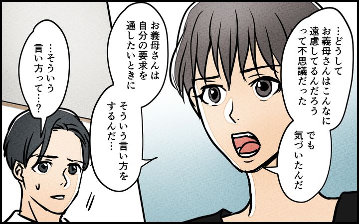 自分を卑下したり、私たちのためと言ってみたりしながら、私たちから選択肢を奪い、最終的にはお義母さんの描いた方向に落ち着いていく。