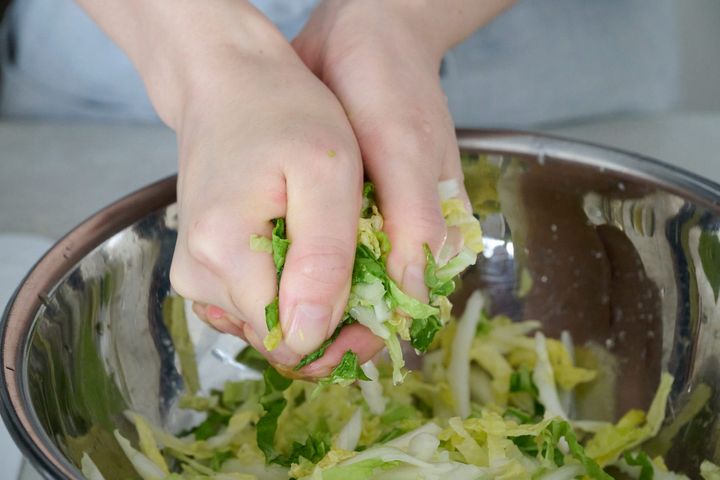 白菜の水気をしっかりと切ることで、柚子こしょうやほかの調味料とうまく混ぜ合わせることができます。