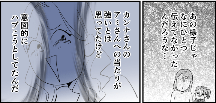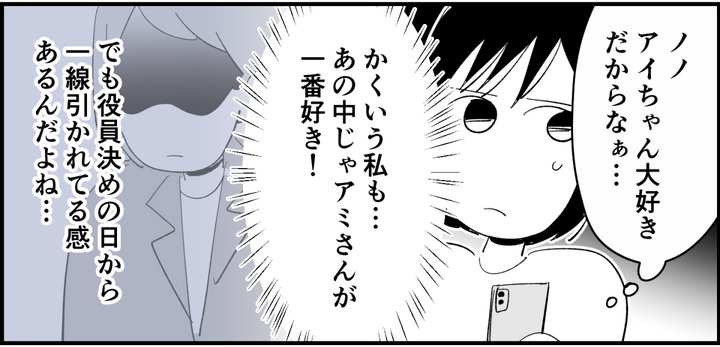 役員決めの一件のことは、私は知らなかったとはいえ、アミさんには申し訳ないことをしてしまいました。普段からカンナさんとアミさんの関係性を見ていて「カンナさんとアミさんは気が合わないのかな?」とは思ってはいましたが、私が余計な口をはさんでトラブルが大きくなっても困ると思い傍観していました。