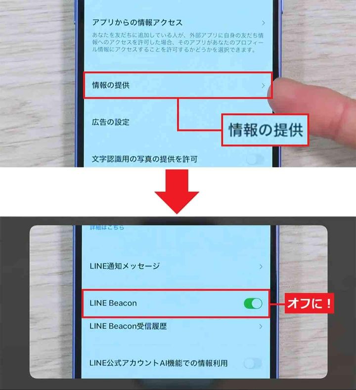 「広告の設定」にある「ウェブ行動履歴を利用した追跡型広告の受信」や、近くの施設と通信する「LINEBeacon」などは、不要であればオフにすべき項目です。また、他人の端末から勝手にログインされるのを防ぐ「ログイン許可」設定も見直しましょう。