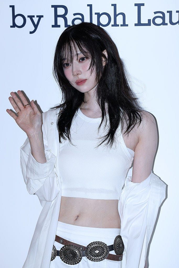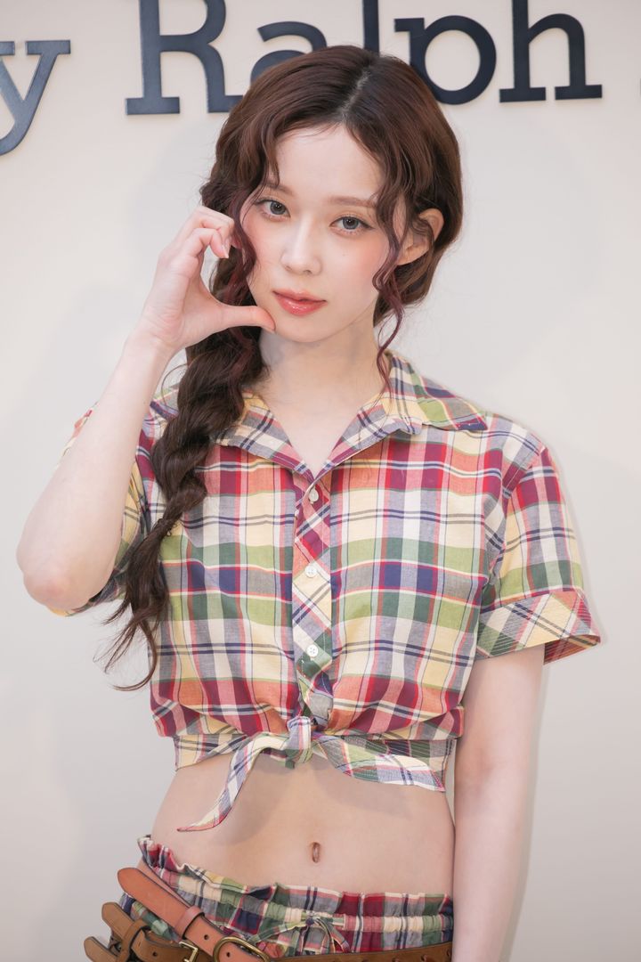 ソウルで行われた「ポロ ラルフ ローレン」のイベントに出席。シャツの裾をキュッと結び、美しいウエストラインを大胆に披露。鮮やかなシャツにリンクさせたオレンジメイクで、ヘルシーかつフレッシュな印象に。