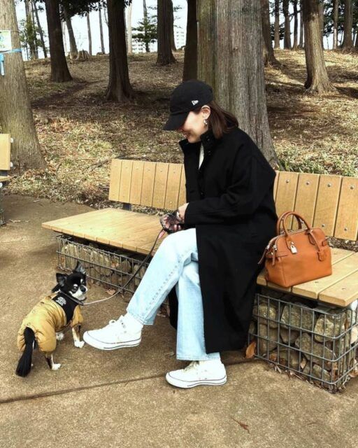 黒コートのコーデにぴったりなのが「白バッグ・白スニーカー」。クリーンな色味のバッグやスニーカーがアクセントとなり、モードな装いに。シンプルで洗練されたスタイリングに決まります。