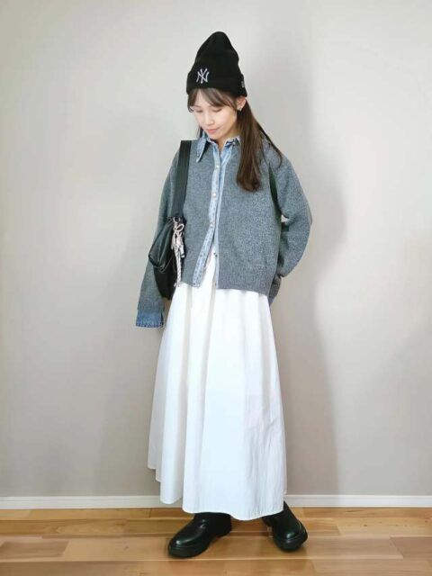 【2025年1月20日のコーデ】スカートコーデにニット帽を合わせるのが今っぽい♪