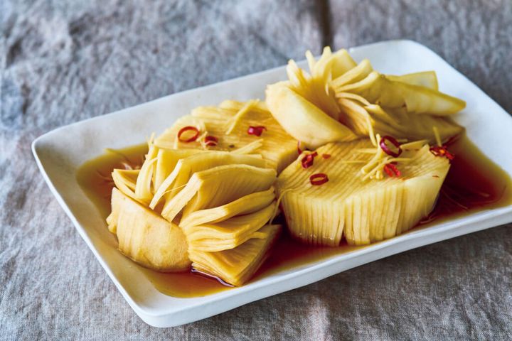 層をパクッとかじれば、ザクザクの歯ざわりが新鮮で、甘酸っぱくピリッと辛い味があとを引きます。箸休めにはもちろん、ご飯のお供にもぴったりの一品です。