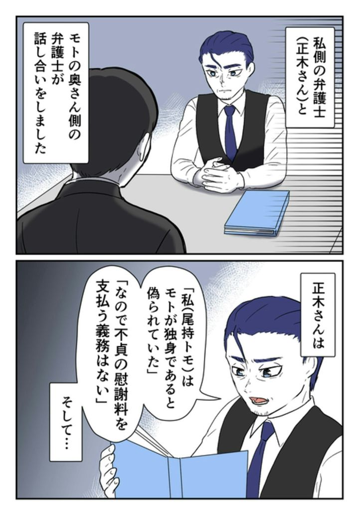 慰謝料を支払わすに済み、ホッとしましたね。ただ、モトが妻に対して直接言った言葉は、ショックな内容でした。そして、慰謝料の請求を取り下げた妻も、思うところがあったようです。