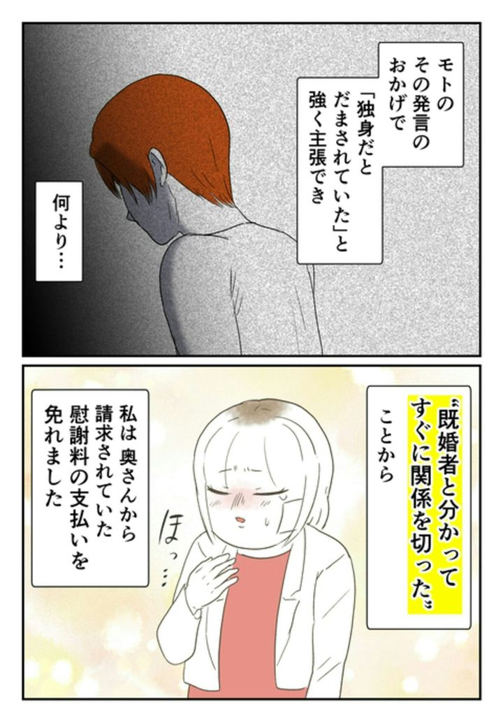 本作では、著者・尾持さんが既婚男性にだまされ、交際を続けてしまった様子が描かれています。ですが尾持さんは、既婚者であることが判明してすぐ、別れを告げます。