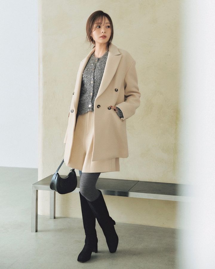 1月20日(火)、シャイニーなラメニットのカーディガンは、1枚で着映えが叶う優秀アイテム。存在感のあるトップスは、ベージュのセットアップでやわらかく受け止めるのが大人のバランスです。タイツは黒を選ばず、カーディガンと同系色のグレーにすることで、全体に一体感が生まれ、ショートボトムもぐっと洗練された印象に。きれいめ感と華やぎを両立した、今どき通勤スタイル。