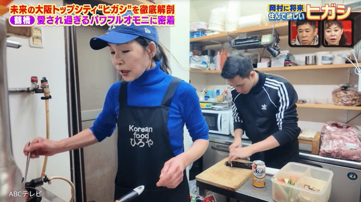 買い出しをして午前10時に営業が開始すると、真紀オモニはビールを飲みながらも休みなく働く。午後3時に店の混雑が落ち着くと、真紀オモニは近所の店へ。地域の人との交流を欠かさないことと、彼女の明るい人柄のおかげで、ひろやは多くの人から愛されているのだ。その後も真紀オモニは、夜6時の営業終了まで飲みながらバリバリ働く。