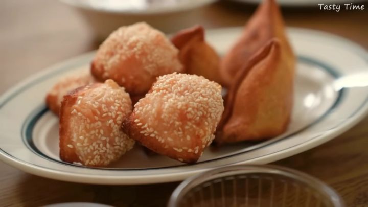 パンにエビのすり身をのせ、ゴマをまぶして油で揚げた、中華料理の前菜として人気の料理です。