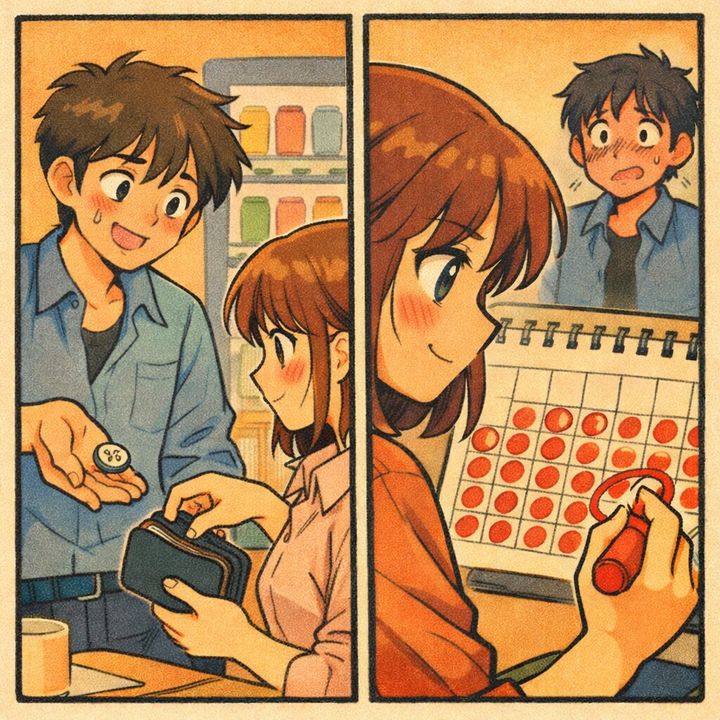 「悪い、100円貸して。小銭切らしちゃってさ」 私は何も言わずに財布から100円玉を出し、彼に手渡しました。