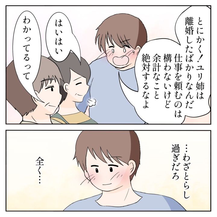 姉ちゃんの思いつきで実家の手伝いをすることになったユリ姉。つい最近離婚を経験したとは思えないほど明るく元気に振る舞っていましたが、時折見せるつらそうな表情から、彼女の傷はまだまだ癒えていないことを思い知らされました。