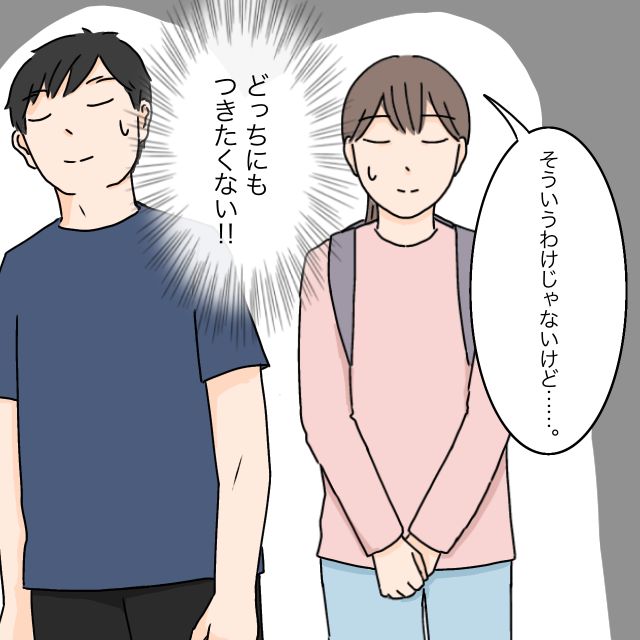 義母に泣かれ「そういうわけじゃないけど・・」と困り顔の太郎。私は「どっちにもつきたくない!!」と心の中で叫びました。きっと太郎も同じ気持ちでしょう。