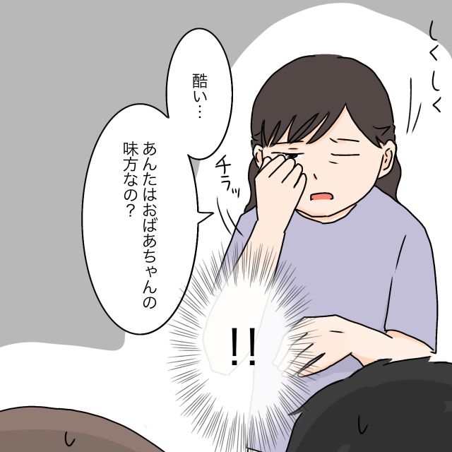 すると今度は「酷い・・。あんたはおばあちゃんの味方なの?」と私たちの方をチラリと見ながらこれ見よがしに義母がしくしく泣きだしました。
