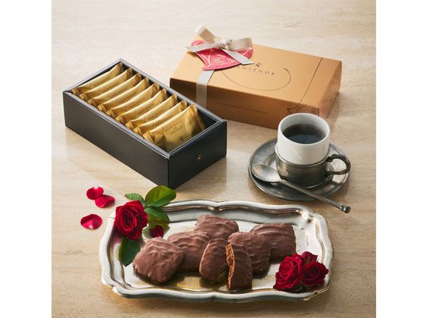 サクッと香ばしいココアクッキー生地を、香り高いベルギー産クーベルチュールチョコレートで丁寧にコーティング。フィヤンティーヌのカリッとした食感が心地よいアクセントとなり、幾重にも重なるショコラの味わいと、つい手が伸びる食感が楽しめます。5個入 735円、9個入 1,080円(画像)、14個入 1,620円の3種展開です。