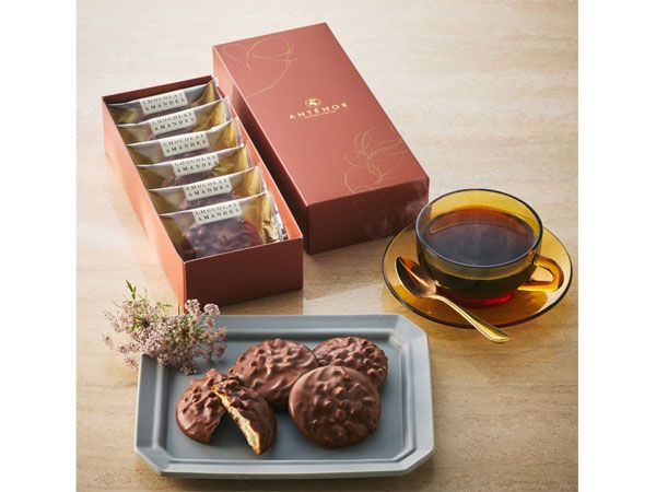 香ばしく焼き上げたアーモンドクッキーに、まろやかな味わいのベルギー産クーベルチュールチョコレートをたっぷりとコーティングしています