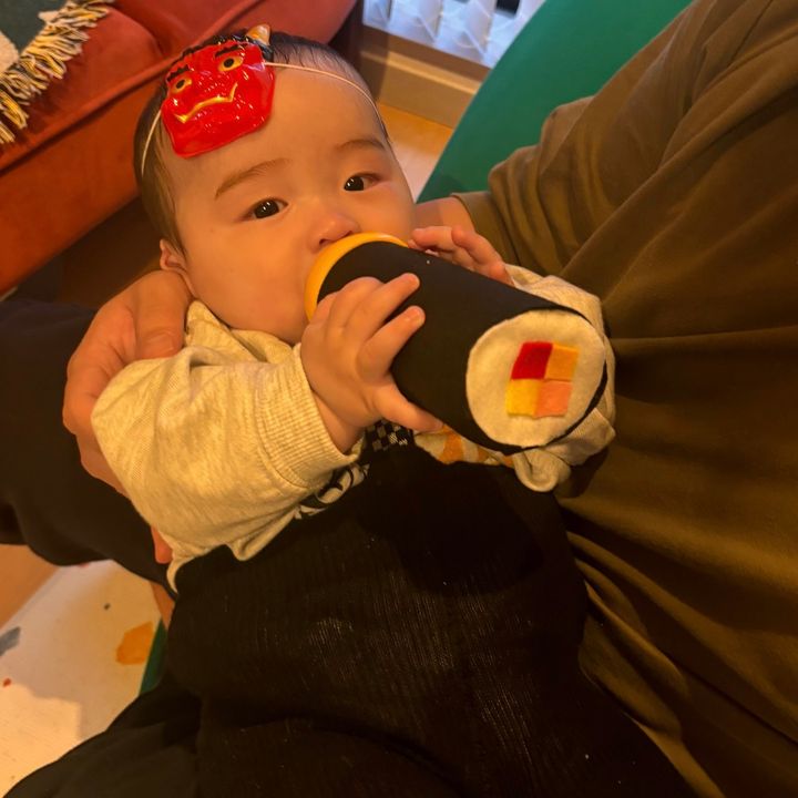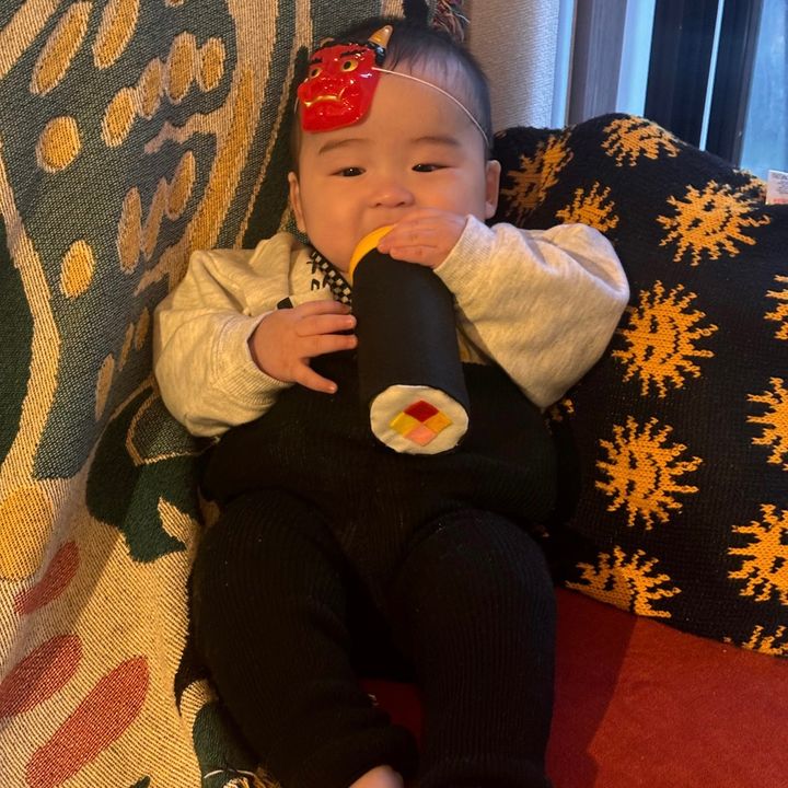 とても手軽に節分気分を味わえましたよ〜!!ミルク期しか見られない「恵方巻き姿」、ぜひ写真に残してみてください🌟
