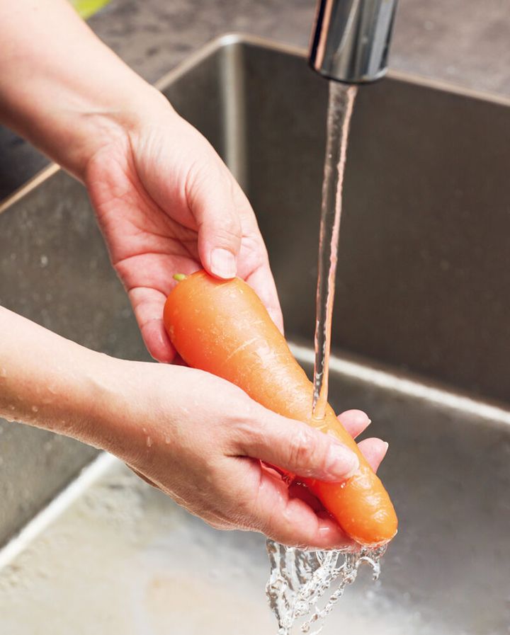 野菜の皮をむくときは先に洗うのではなく、皮をむいたりヘタをとってから洗うと◎。