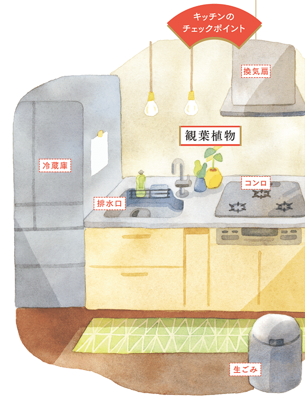 キッチンの日々のそうじでは、「におい、ぬめり、油汚れ」を除去することがポイント。