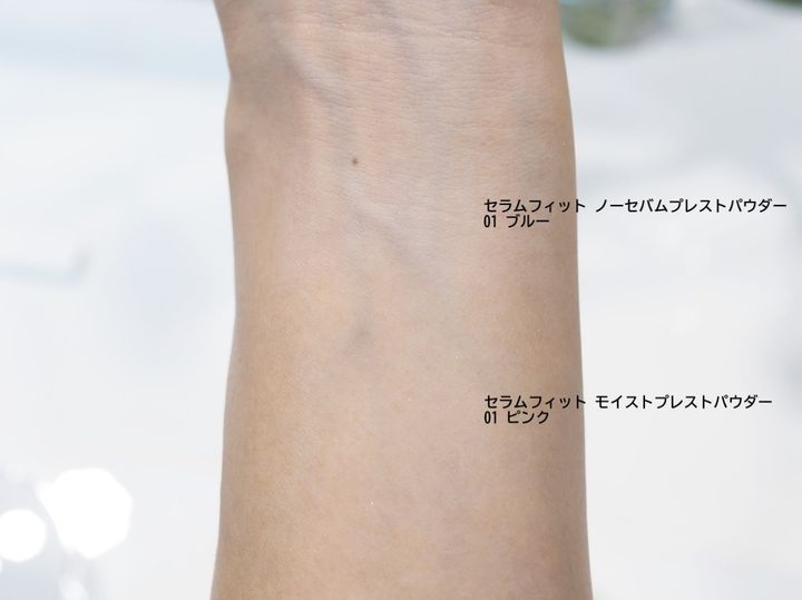 パフで塗布してみると、ワンストロークでつるんとなめらかな仕上がりに。どちらも白浮きやマットになりすぎることなく、肌と一体化するかのようになじみますよ。
