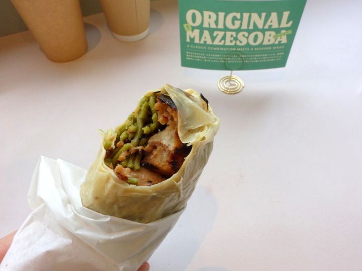 ヘルシー気分のときにおすすめなのは、和の要素がたっぷり詰まった「ORIJINAL MAZESOBA」。ブランドで一番人気のフレーバーだそうで、茶そばや車麩(くるまふ)、きゅうり、山芋などを生湯葉で包んでいます。