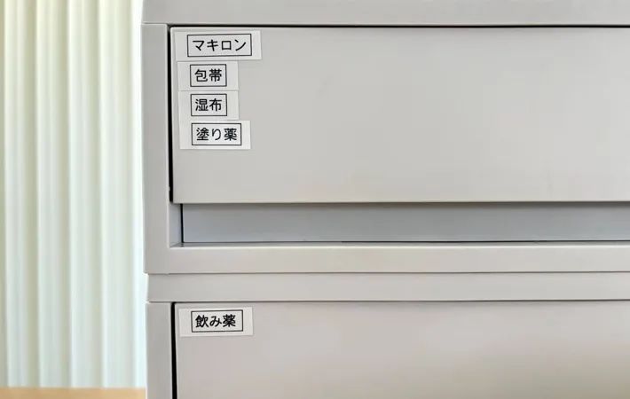 外用薬と飲み薬で引き出しを分けると探しやすくなります。ラベリングすると家族も迷いません。