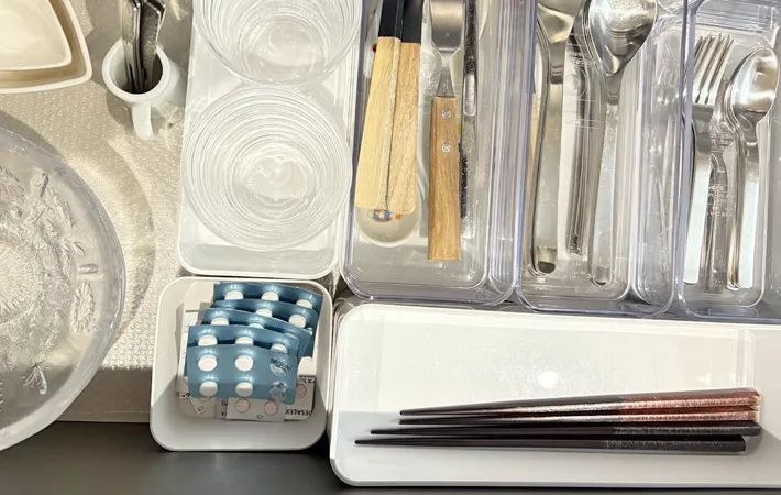 毎日食後に飲む薬は、食器棚の引き出しに収納(撮影:Classy Life)
