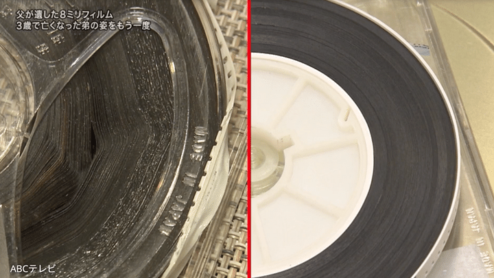 保管されていた8ミリフィルムには、父が編集した「ベスト盤」と、そこに入らなかった大量の「未編集盤」がある。永見探偵が「回るイメージがつかない」というほどフィルムが傷んでいる理由は、1995年に発生した阪神大震災で水浸しになってしまったからだとか。