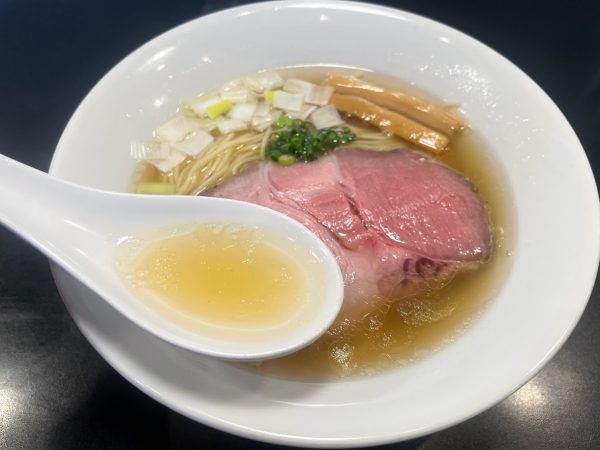 透き通った黄金色のスープをひと口いただくと…なにこれおいしい~! さっぱりした味の中に牛骨の旨味が凝縮されていて、飲みやすくてレンゲが止まらない…